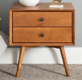 Estrutura em madeira maciça com acabamento Walnut e Caramelo 1 gaveta com puxador metálico 1 nicho inferior para livros ou decoração