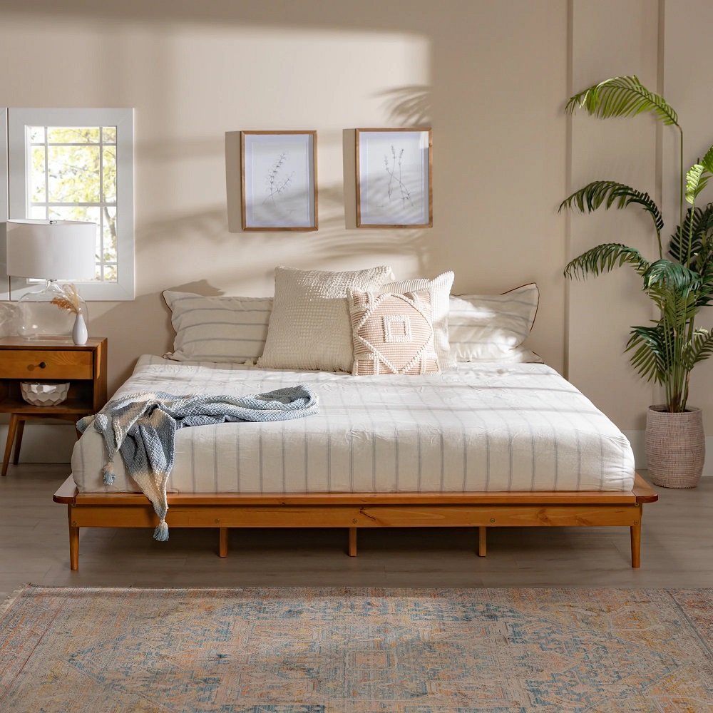 A Cama Plataforma King une design minimalista e conforto em uma peça de visual leve e contemporâneo. Fabricada em madeira maciça com acabamento natural, valoriza os veios da madeira e traz um toque acolhedor ao ambiente. Sua estrutura baixa e robusta proporciona estabilidade e elegância, criando uma base sólida e moderna para o colchão. Ideal para quartos de estilo moderno, escandinavo ou industrial leve, a cama se integra facilmente a diferentes decorações. O design sem cabeceira permite personalizar a parede com quadros ou painéis, dando um toque único ao seu espaço.